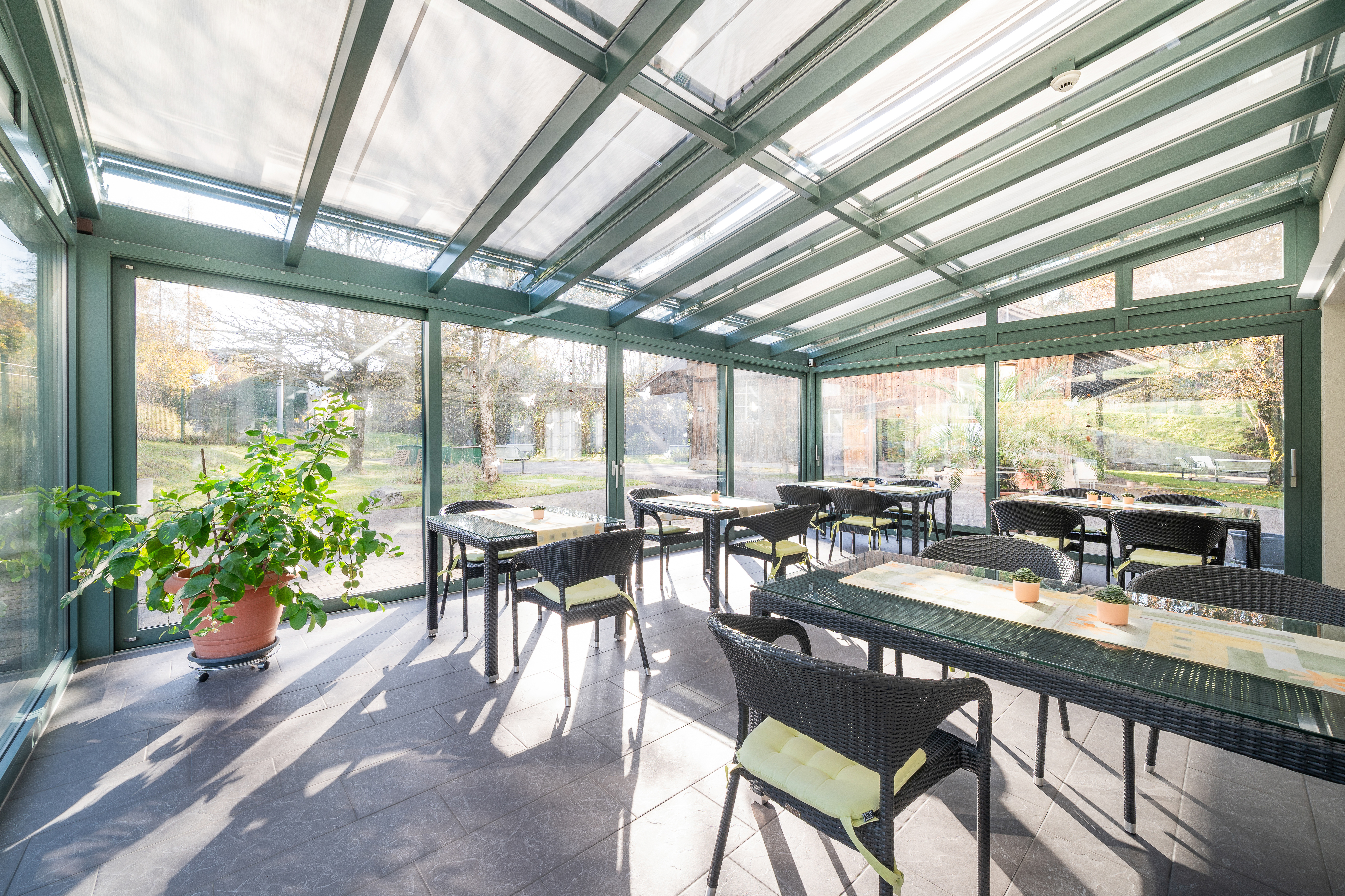 Das Haus Geern achtet auf eine abwechslungsreiche und ausgewogene Ernährung. Wir nehmen Rücksicht auf individuelle Wünsche und ärztlich verordnete Diäten. Alle Mahlzeiten werden in der Regel gemeinsam im Speisesaal eingenommen. Bei Bedarf servieren wir das Essen auch im Zimmer. Gerne bewirten wir auch Ihre Gäste.